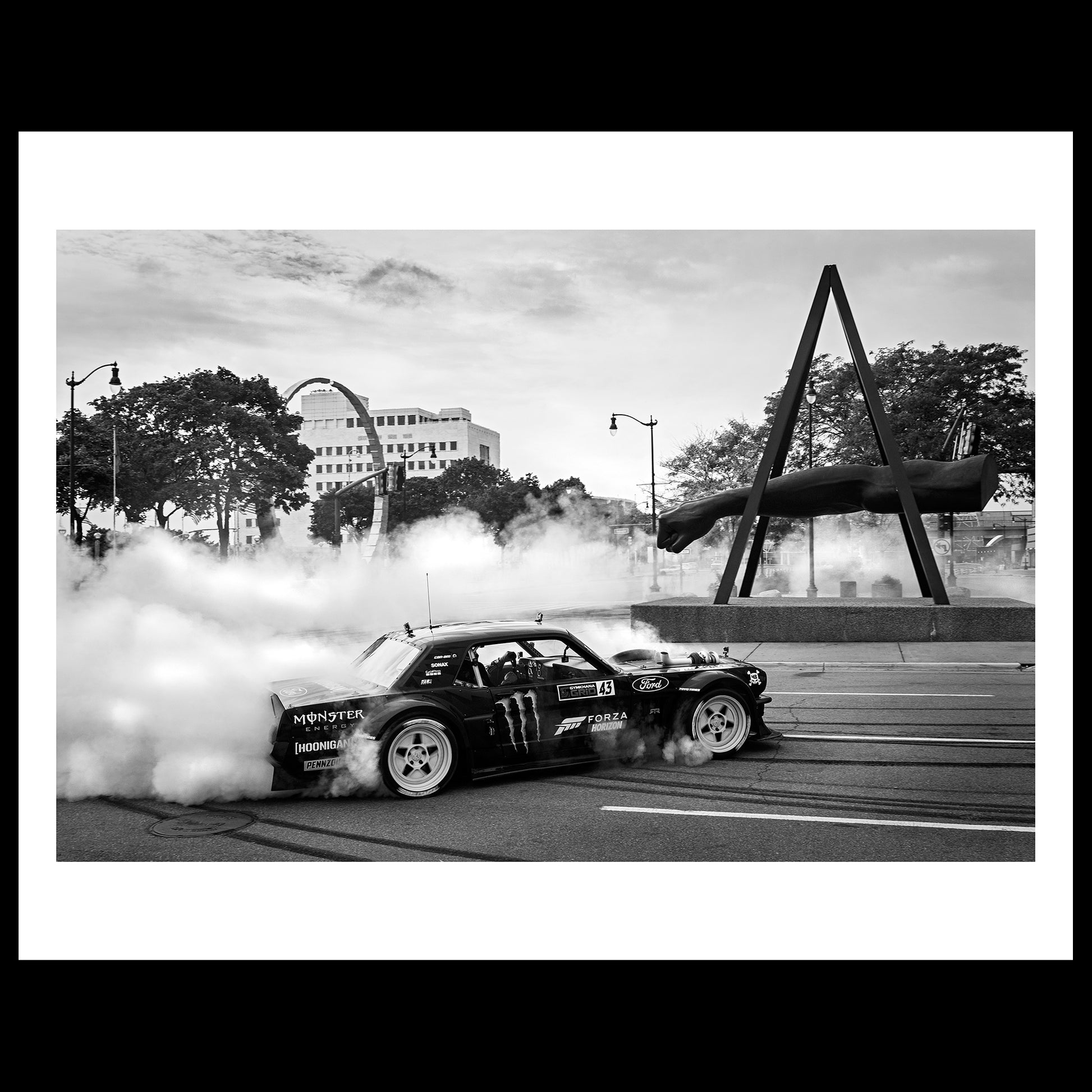 Ken Block in the Hoonicorn doing donuts around The Fist.